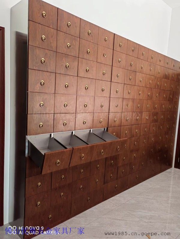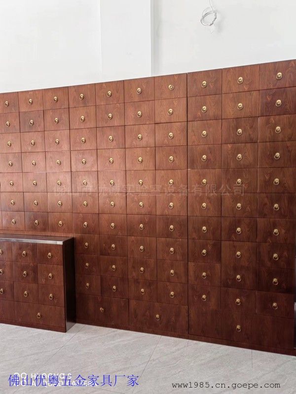 - 3、中药柜的摆放要放平放正,不要四腿不在一个平面上。药柜整体要与地面保持垂直,否则易引起药柜整体和抽屉等部位变形,造成缝口开缝,有损中药柜的寿命。